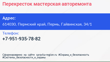 Перекресток, мастерская авторемонта по адресу 614030, Пермский край, Пермь, Гайвинская, 34/1 в дальнейшем Организация, размещена в следующих категориях: