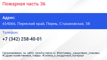 Пожарная часть №36 по адресу 614066, Пермский край, Пермь, Стахановская, 58 в дальнейшем Организация, размещена в следующих категориях: