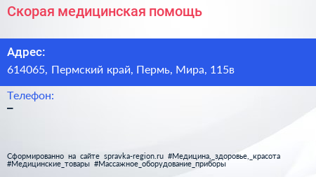Скорая медицинская помощь по адресу 614065, Пермский край, Пермь, Мира, 115в в дальнейшем Организация, размещена в следующих категориях: