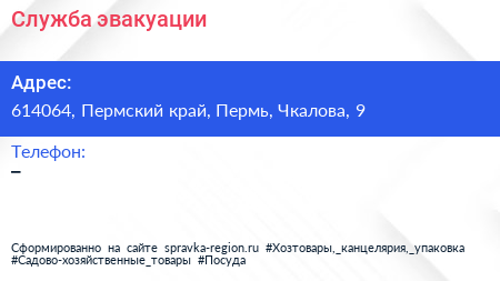 Служба эвакуации по адресу 614064, Пермский край, Пермь, Чкалова, 9 в дальнейшем Организация, размещена в следующих категориях: