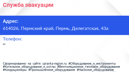 Служба эвакуации по адресу 614026, Пермский край, Пермь, Делегатская, 43а в дальнейшем Организация, размещена в следующих категориях: