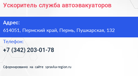 Ускоритель, служба автоэвакуаторов по адресу 614051, Пермский край, Пермь, Пушкарская, 132 в дальнейшем Организация, размещена в следующих категориях: