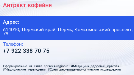 Антракт, кофейня по адресу 614010, Пермский край, Пермь, Комсомольский проспект, 79 в дальнейшем Организация, размещена в следующих категориях: