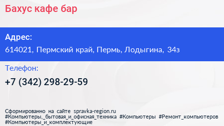 Бахус, кафе-бар по адресу 614021, Пермский край, Пермь, Лодыгина, 34з в дальнейшем Организация, размещена в следующих категориях: