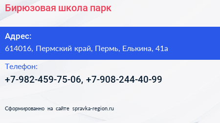 Бирюзовая, школа-парк по адресу 614016, Пермский край, Пермь, Елькина, 41а в дальнейшем Организация, размещена в следующих категориях:
