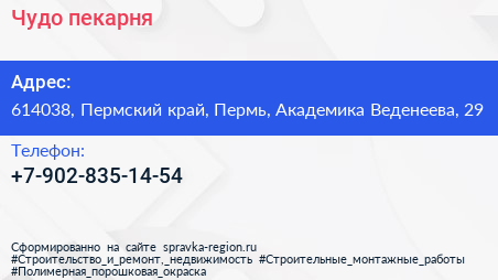 Чудо, пекарня по адресу 614038, Пермский край, Пермь, Академика Веденеева, 29 в дальнейшем Организация, размещена в следующих категориях: