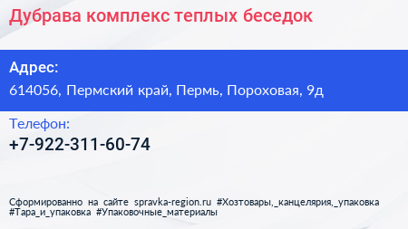 Дубрава, комплекс теплых беседок по адресу 614056, Пермский край, Пермь, Пороховая, 9д в дальнейшем Организация, размещена в следующих категориях: