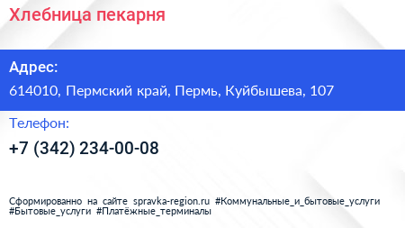 Хлебница, пекарня по адресу 614010, Пермский край, Пермь, Куйбышева, 107 в дальнейшем Организация, размещена в следующих категориях: