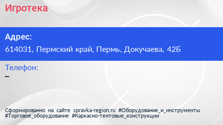 Игротека по адресу 614031, Пермский край, Пермь, Докучаева, 42Б в дальнейшем Организация, размещена в следующих категориях: