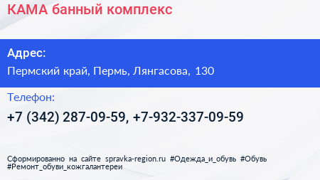 КАМА, банный комплекс по адресу Пермский край, Пермь, Лянгасова, 130 в дальнейшем Организация, размещена в следующих категориях: