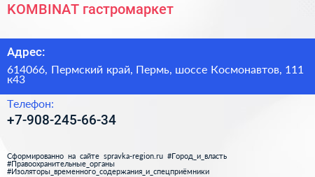 KOMBINAT, гастромаркет по адресу 614066, Пермский край, Пермь, шоссе Космонавтов, 111 к43 в дальнейшем Организация, размещена в следующих категориях: