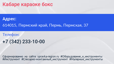 Кабаре, караоке-бокс по адресу 614015, Пермский край, Пермь, Пермская, 37 в дальнейшем Организация, размещена в следующих категориях: