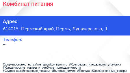 Комбинат питания по адресу 614015, Пермский край, Пермь, Луначарского, 1 в дальнейшем Организация, размещена в следующих категориях:
