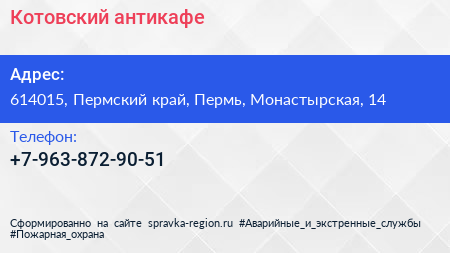Котовский, антикафе по адресу 614015, Пермский край, Пермь, Монастырская, 14 в дальнейшем Организация, размещена в следующих категориях: