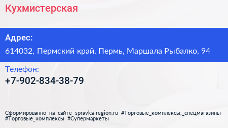 Кухмистерская по адресу 614032, Пермский край, Пермь, Маршала Рыбалко, 94 в дальнейшем Организация, размещена в следующих категориях: