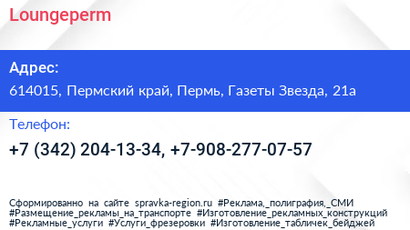 Loungeperm по адресу 614015, Пермский край, Пермь, Газеты Звезда, 21а в дальнейшем Организация, размещена в следующих категориях:
