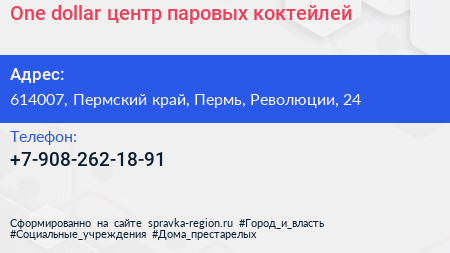 One dollar, центр паровых коктейлей по адресу 614007, Пермский край, Пермь, Революции, 24 в дальнейшем Организация, размещена в следующих категориях: