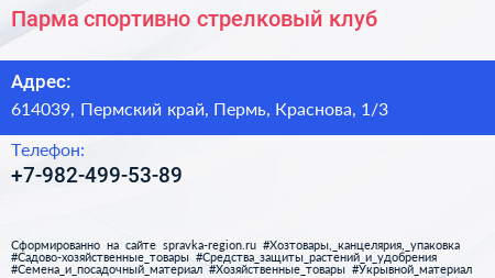 Парма, спортивно-стрелковый клуб по адресу 614039, Пермский край, Пермь, Краснова, 1/3 в дальнейшем Организация, размещена в следующих категориях: