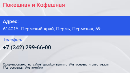 Покешная и Кофешная по адресу 614015, Пермский край, Пермь, Пермская, 69 в дальнейшем Организация, размещена в следующих категориях: