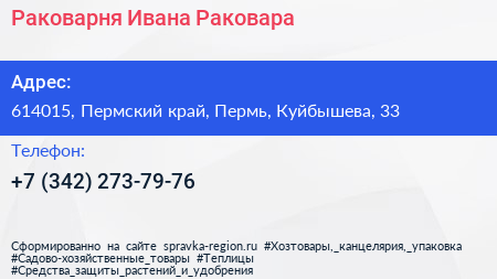 Раковарня Ивана Раковара по адресу 614015, Пермский край, Пермь, Куйбышева, 33 в дальнейшем Организация, размещена в следующих категориях: