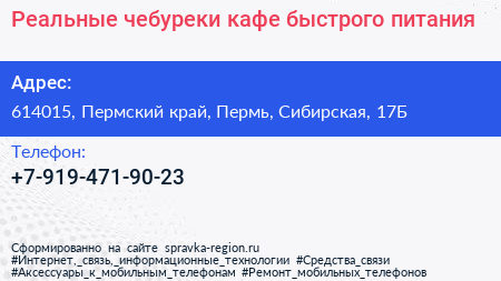 Реальные чебуреки, кафе быстрого питания по адресу 614015, Пермский край, Пермь, Сибирская, 17Б в дальнейшем Организация, размещена в следующих категориях: