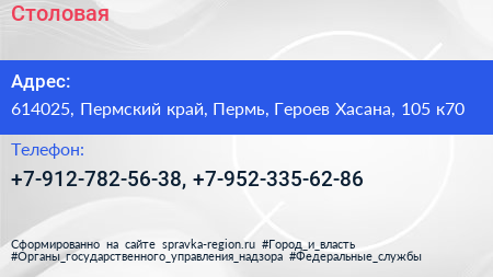 Столовая по адресу 614025, Пермский край, Пермь, Героев Хасана, 105 к70 в дальнейшем Организация, размещена в следующих категориях: