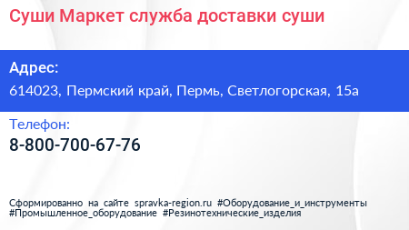 Суши-Маркет, служба доставки суши по адресу 614023, Пермский край, Пермь, Светлогорская, 15а в дальнейшем Организация, размещена в следующих категориях: