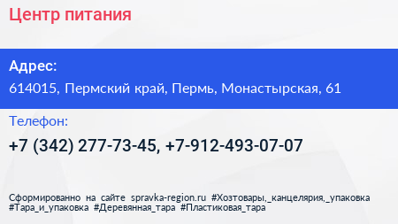 Центр питания по адресу 614015, Пермский край, Пермь, Монастырская, 61 в дальнейшем Организация, размещена в следующих категориях: