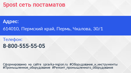 5post, сеть постаматов по адресу 614010, Пермский край, Пермь, Чкалова, 30/1 в дальнейшем Организация, размещена в следующих категориях:
