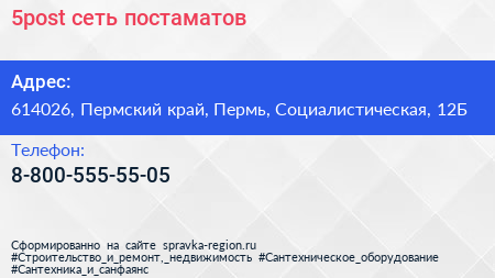 5post, сеть постаматов по адресу 614026, Пермский край, Пермь, Социалистическая, 12Б в дальнейшем Организация, размещена в следующих категориях: