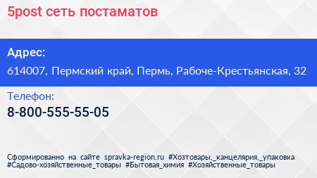 5post, сеть постаматов по адресу 614007, Пермский край, Пермь, Рабоче-Крестьянская, 32 в дальнейшем Организация, размещена в следующих категориях: