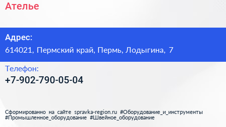 Ателье по адресу 614021, Пермский край, Пермь, Лодыгина, 7 в дальнейшем Организация, размещена в следующих категориях: