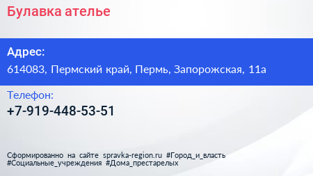 Булавка, ателье по адресу 614083, Пермский край, Пермь, Запорожская, 11а в дальнейшем Организация, размещена в следующих категориях: