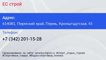 ЕС-строй по адресу 614081, Пермский край, Пермь, Кронштадтская, 45 в дальнейшем Организация, размещена в следующих категориях: