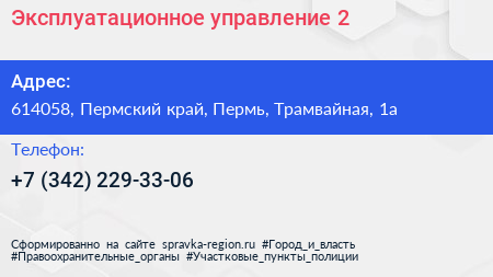 Эксплуатационное управление №2 по адресу 614058, Пермский край, Пермь, Трамвайная, 1а в дальнейшем Организация, размещена в следующих категориях: