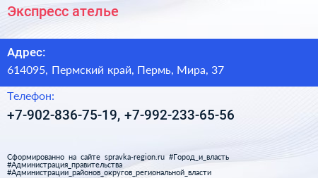 Экспресс-ателье по адресу 614095, Пермский край, Пермь, Мира, 37 в дальнейшем Организация, размещена в следующих категориях: