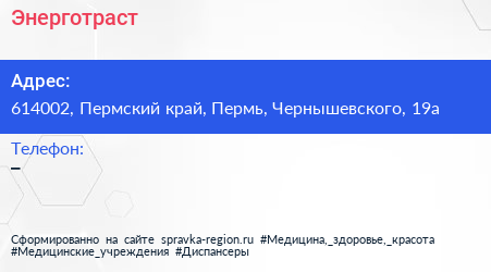 Энерготраст по адресу 614002, Пермский край, Пермь, Чернышевского, 19а в дальнейшем Организация, размещена в следующих категориях:
