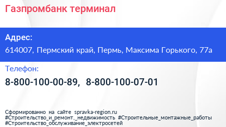 Газпромбанк, терминал по адресу 614007, Пермский край, Пермь, Максима Горького, 77а в дальнейшем Организация, размещена в следующих категориях: