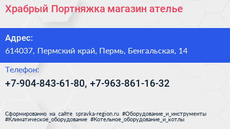 Храбрый Портняжка, магазин-ателье по адресу 614037, Пермский край, Пермь, Бенгальская, 14 в дальнейшем Организация, размещена в следующих категориях: