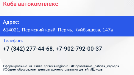 Коба, автокомплекс по адресу 614021, Пермский край, Пермь, Куйбышева, 147а в дальнейшем Организация, размещена в следующих категориях: