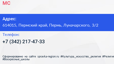 МС по адресу 614015, Пермский край, Пермь, Луначарского, 3/2 в дальнейшем Организация, размещена в следующих категориях: