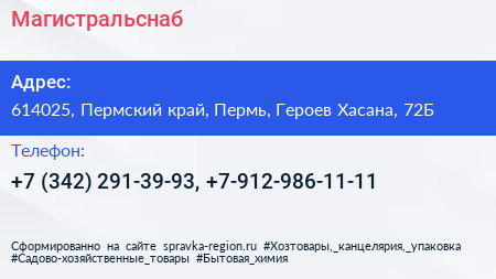 Магистральснаб по адресу 614025, Пермский край, Пермь, Героев Хасана, 72Б в дальнейшем Организация, размещена в следующих категориях: