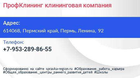 ПрофКлининг, клининговая компания по адресу 614068, Пермский край, Пермь, Ленина, 92 в дальнейшем Организация, размещена в следующих категориях: