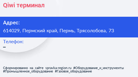 Qiwi, терминал по адресу 614029, Пермский край, Пермь, Трясолобова, 73 в дальнейшем Организация, размещена в следующих категориях: