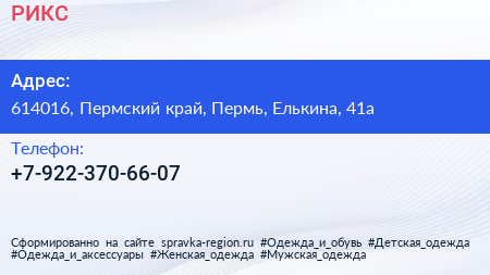 РИКС по адресу 614016, Пермский край, Пермь, Елькина, 41а в дальнейшем Организация, размещена в следующих категориях:
