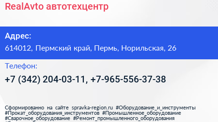 RealAvto, автотехцентр по адресу 614012, Пермский край, Пермь, Норильская, 26 в дальнейшем Организация, размещена в следующих категориях: