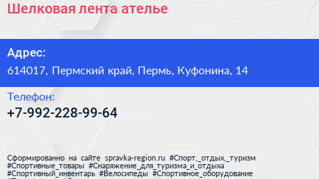 Шелковая лента, ателье по адресу 614017, Пермский край, Пермь, Куфонина, 14 в дальнейшем Организация, размещена в следующих категориях: