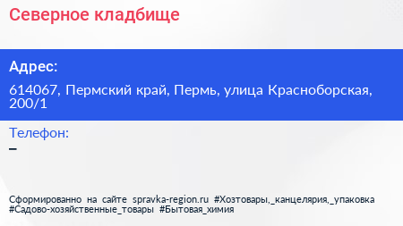 Северное кладбище по адресу 614067, Пермский край, Пермь, улица Красноборская, 200/1 в дальнейшем Организация, размещена в следующих категориях: