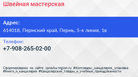 Швейная мастерская по адресу 614018, Пермский край, Пермь, 5-я линия, 1в в дальнейшем Организация, размещена в следующих категориях: