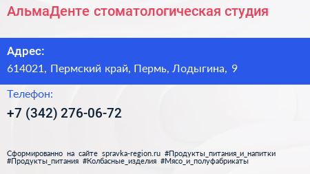 АльмаДенте, стоматологическая студия по адресу 614021, Пермский край, Пермь, Лодыгина, 9 в дальнейшем Организация, размещена в следующих категориях: